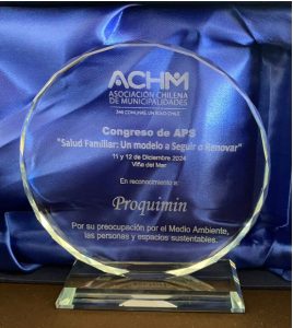Proquimin LTDA., empresa de capitales chilenos dedicada al suministro de productos químicos para la minería, recibió un reconocimiento por parte de la Asociación Chilena de Municipalidades, considerando su preocupación por el medioambiente, las personas y espacios sustentables.